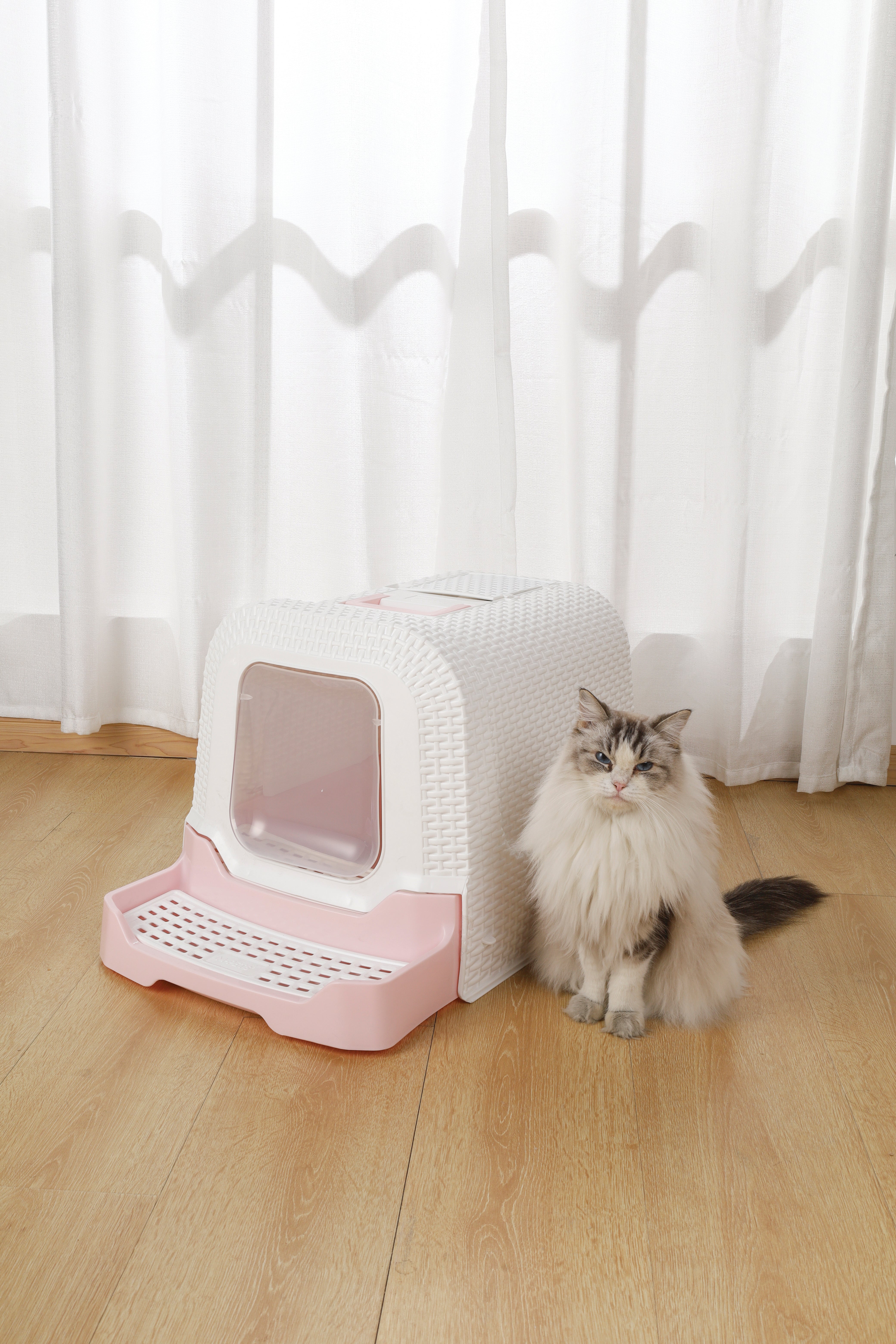 M-PETS® Solution: Choose from our open trays for easy access or covered boxes for privacy. Their odor-control designs help reduce smell, while litter mats trap particles from your cat’s paws, keeping floors cleaner.