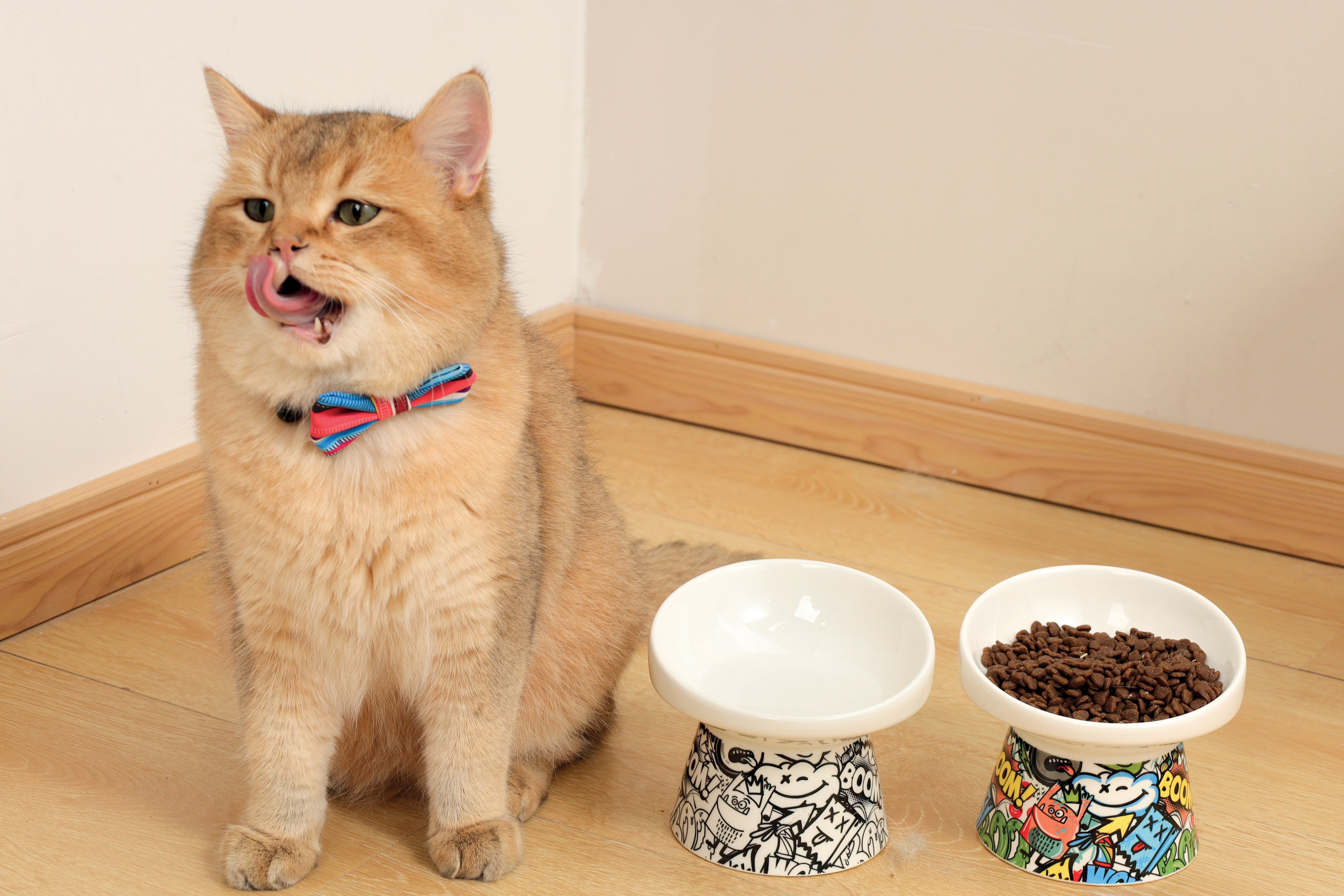 Why it matters: Many cats prefer to eat in calm, predictable places. Shallow bowls prevent whisker fatigue, and slow feeders are great for portion control.