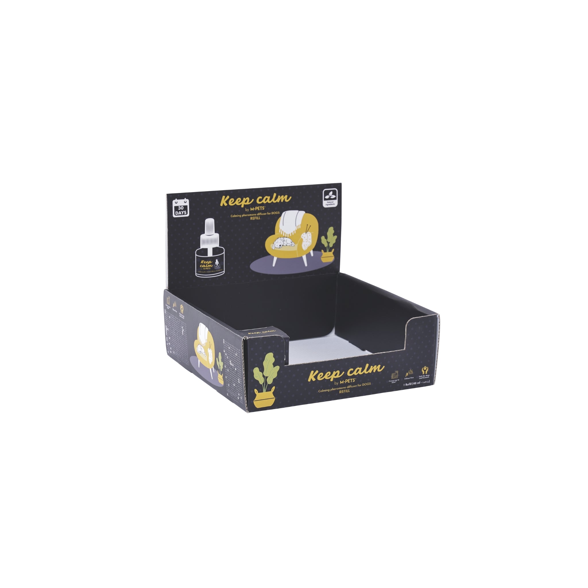 Help your beloved dog manage their stress with Keep Calm by M-PETS® , a new range of products specially designed to relax dogs by easing their stress in various situations. The diffusers and sprays are a great way to spread relaxing pheromones that help dogs feel more comfortable and secure in their home. Want to boost your dog’s mood on the go? Try the Calming pheromone collar set to provide your dog with extra relaxation, wherever they go. Keep Calm provides a multitude of effective solutions to encourage relaxation and improve your dog’s well-being during stressful times. Whether it’s timidness, stress, or aggression that your dog is experiencing, the Keep Calm range offers gentle yet powerful support to restore balance and comfort for your canine companion. Our full range comes in handy displays to improve product visibility in stores and highlight key features.